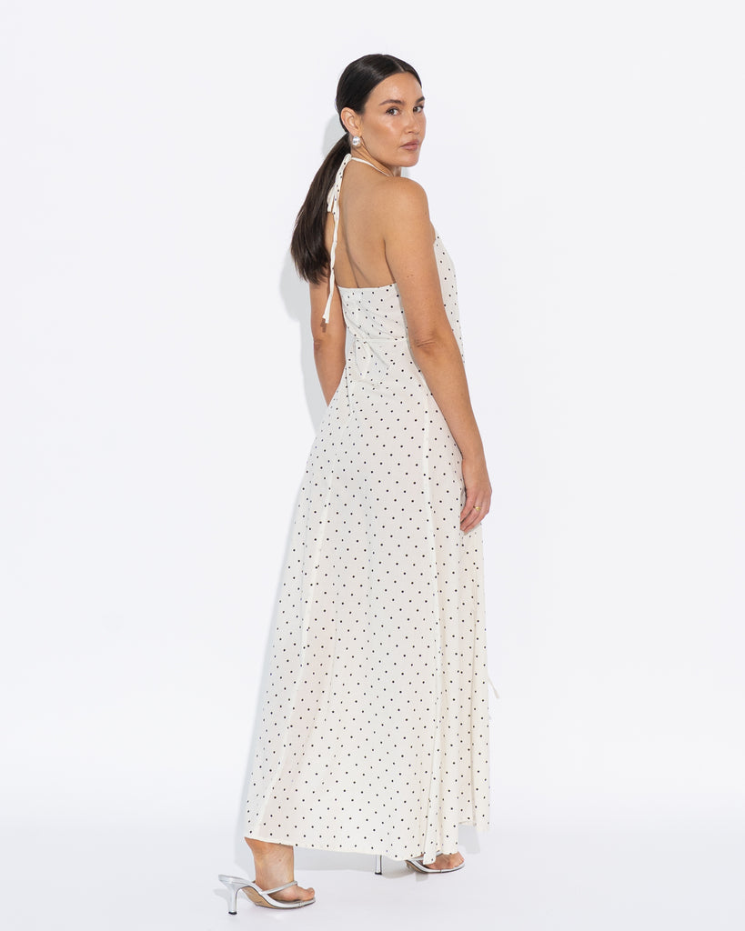 Sedona Halter Dress - Vanilla/Black Polka Dot - PREORDER