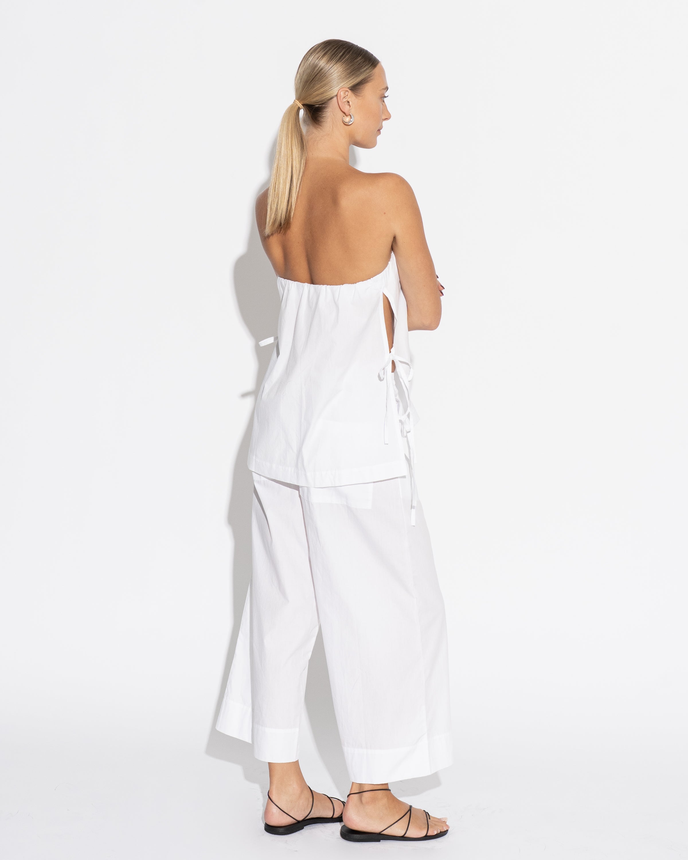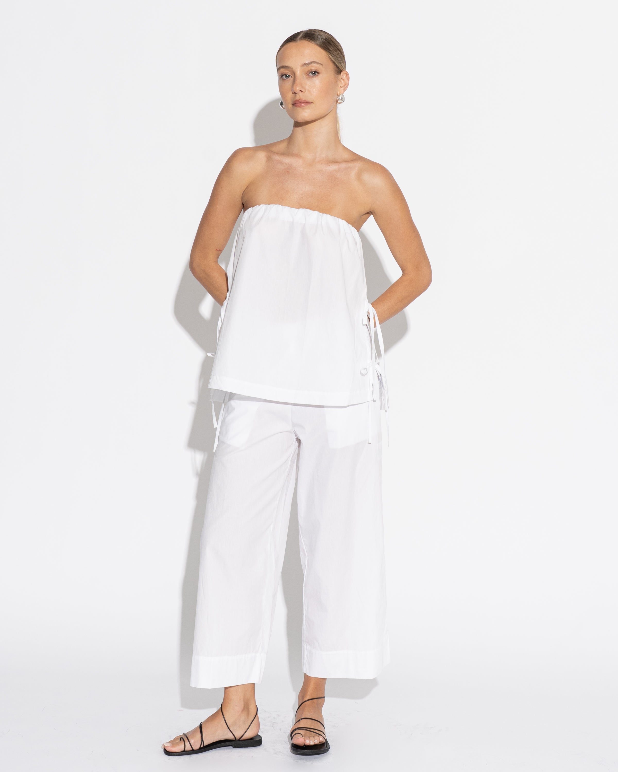 The Samba Top is a strapless cami with elasticised bust & side splits with adjustable tie detail. Available in Black and White. Pair with the Samba Pant or Pheme Pant to complete the look.