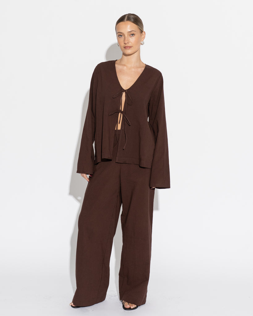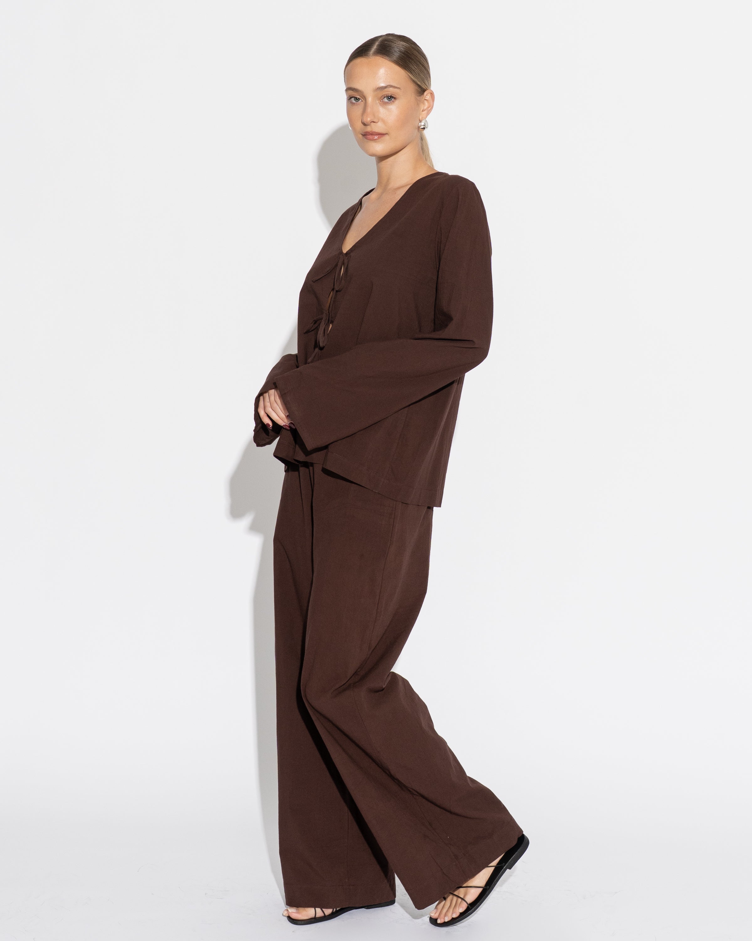 The Caterina Story is crafted from cacao cotton brush, offering a breezy drape and naturally creased texture. Part of the Carioca Resort ’26 collection, it embodies relaxed sophistication made for holiday mode.