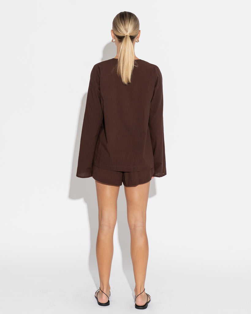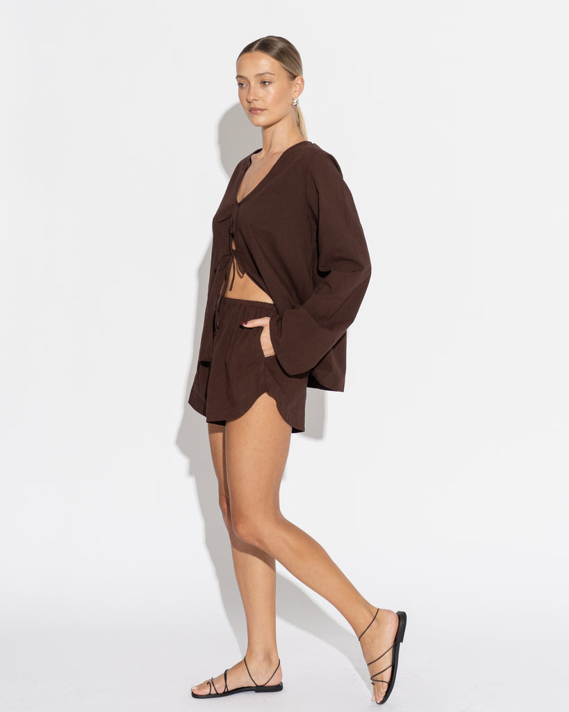 A relaxed fit short with drawstring waist and side pockets, based on the silhouette of our best-selling Dahlia Short. Pair with our Caterina Top or Ruched Cami to complete look.