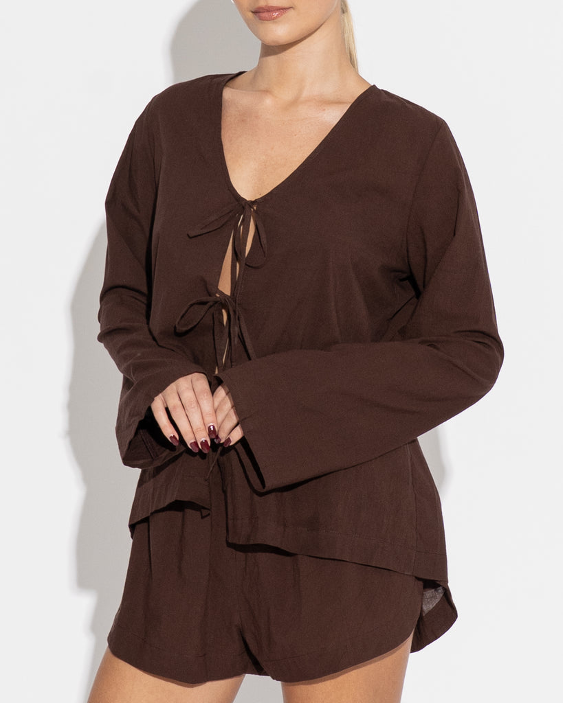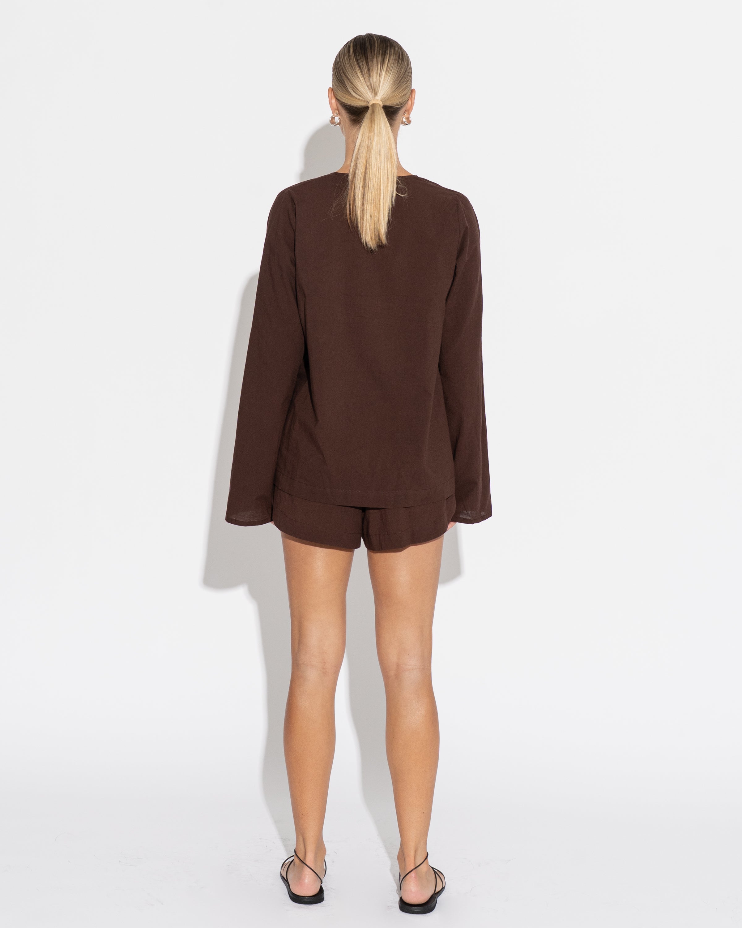 The Caterina Story is crafted from cacao cotton brush, offering a breezy drape and naturally creased texture. Part of the Carioca Resort ’26 collection, it embodies relaxed sophistication made for holiday mode.